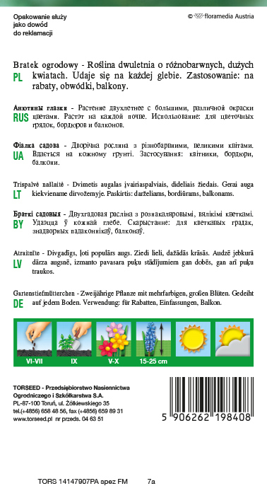 Bratek ogrodowy – Roślina dwuletnia o bardzo dużych kwiatach. Udaje się na każdej glebie. Zastosowanie: na rabaty, obwódki, balkony.