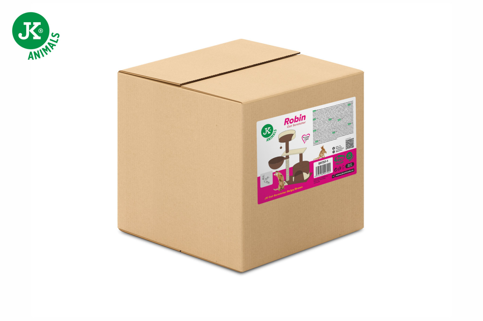 - drapak posiada podwyższoną podłogę oraz domek, który stanowi kryjówkę, gdy kot potrzebuje odpoczynku w odosobnionym miejscu