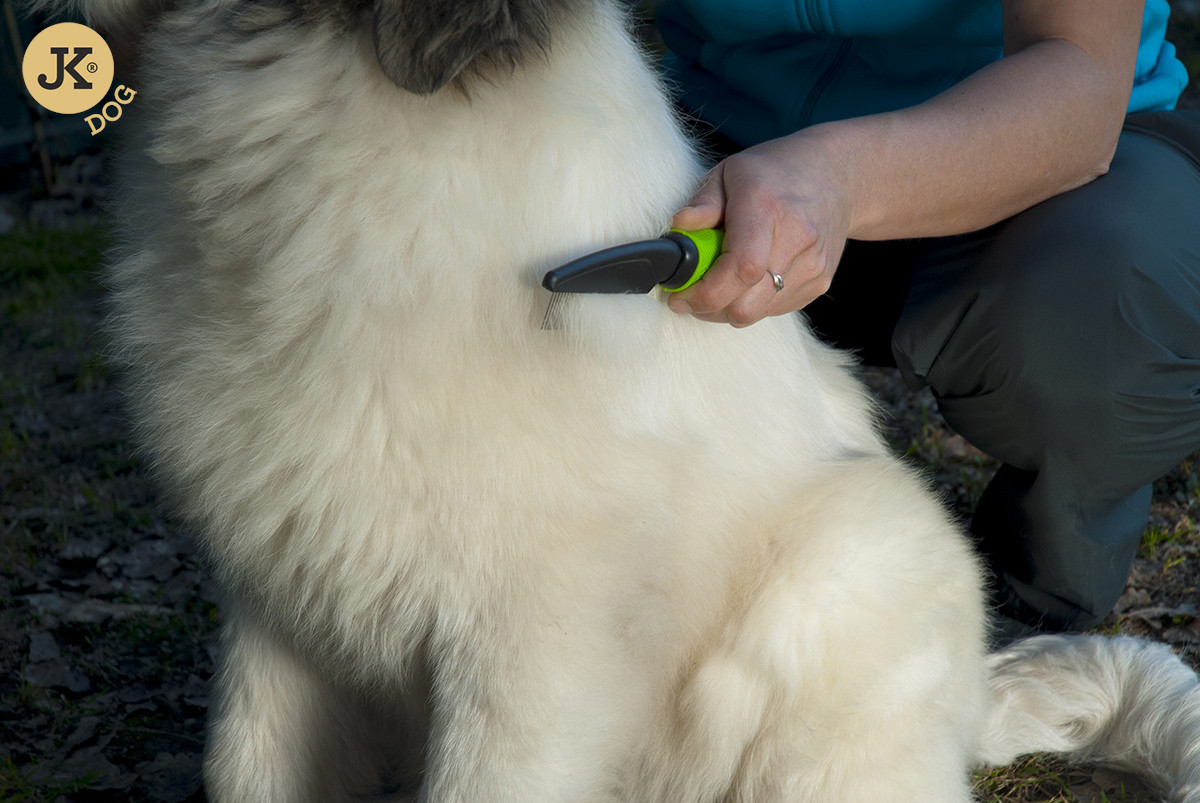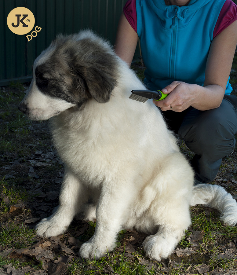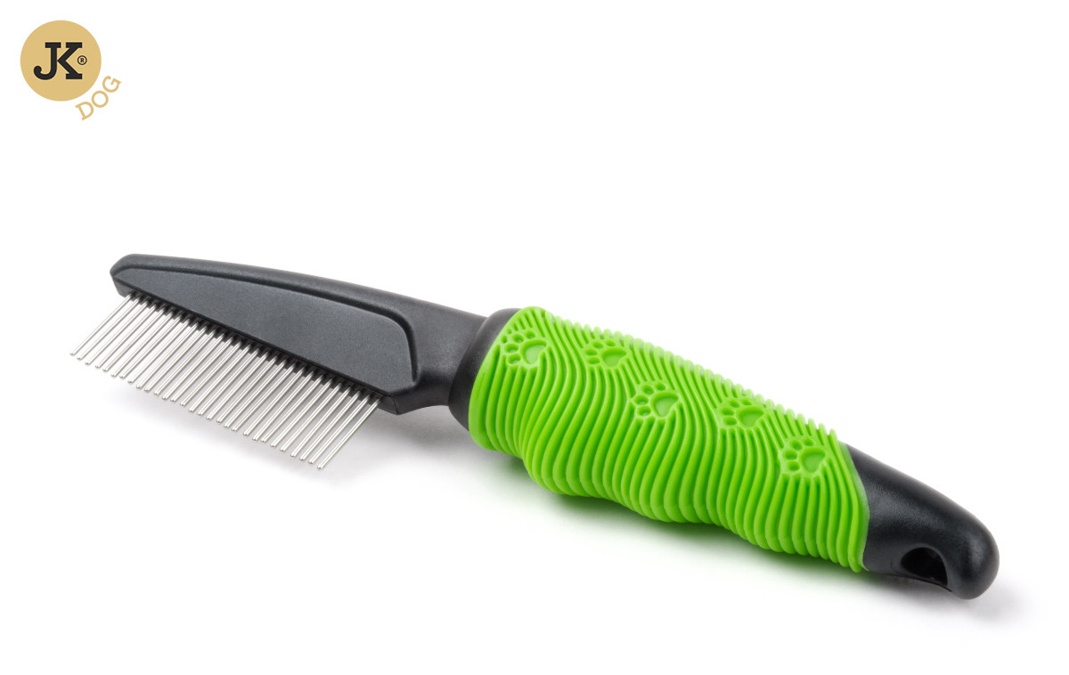 Grzebień posiada profesjonalny miękki, ergonomiczny uchwyt dla maksymalnego komfortu i kontroli użytkowania. Uniwersalny grzebień dla psów o gęstej sierści (np. foxterier). Obrotowe groty łatwo rozczesują gęstą sierść. Gładkie zaokrąglone końcówki grotów są łagodne dla skóry zwierzęcia.