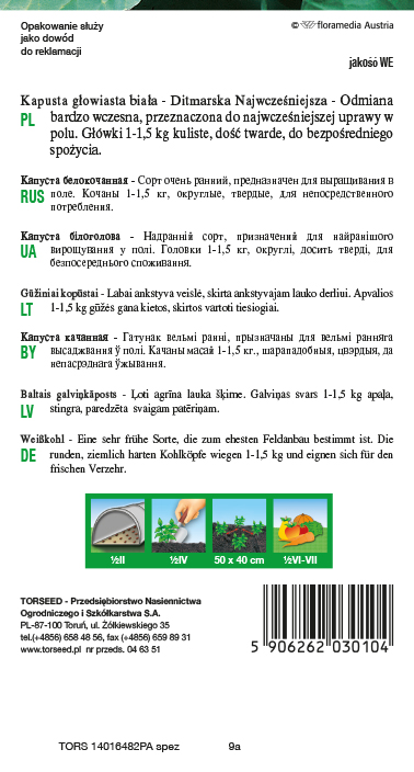 Kapusta głowiasta Ditmarska Najwcześniejsza.