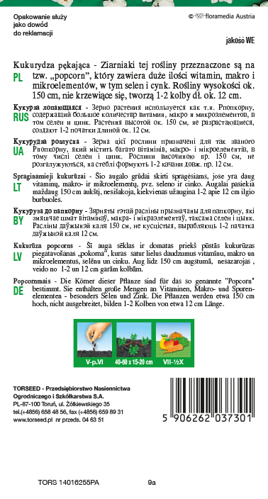 Kukurydza pękający Płomyk. Odmiana o pomarańczowym ziarnie z bardzo dobrą zdolnością pękania. Rośliny dorastają do wysokości 160 cm, nie krzewią się. Kolby o długości do 12 cm. Ziarno wykazuje dobrą zdolność pękania w wilgotności ok 12%. Odmiana średnio plenna.