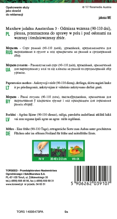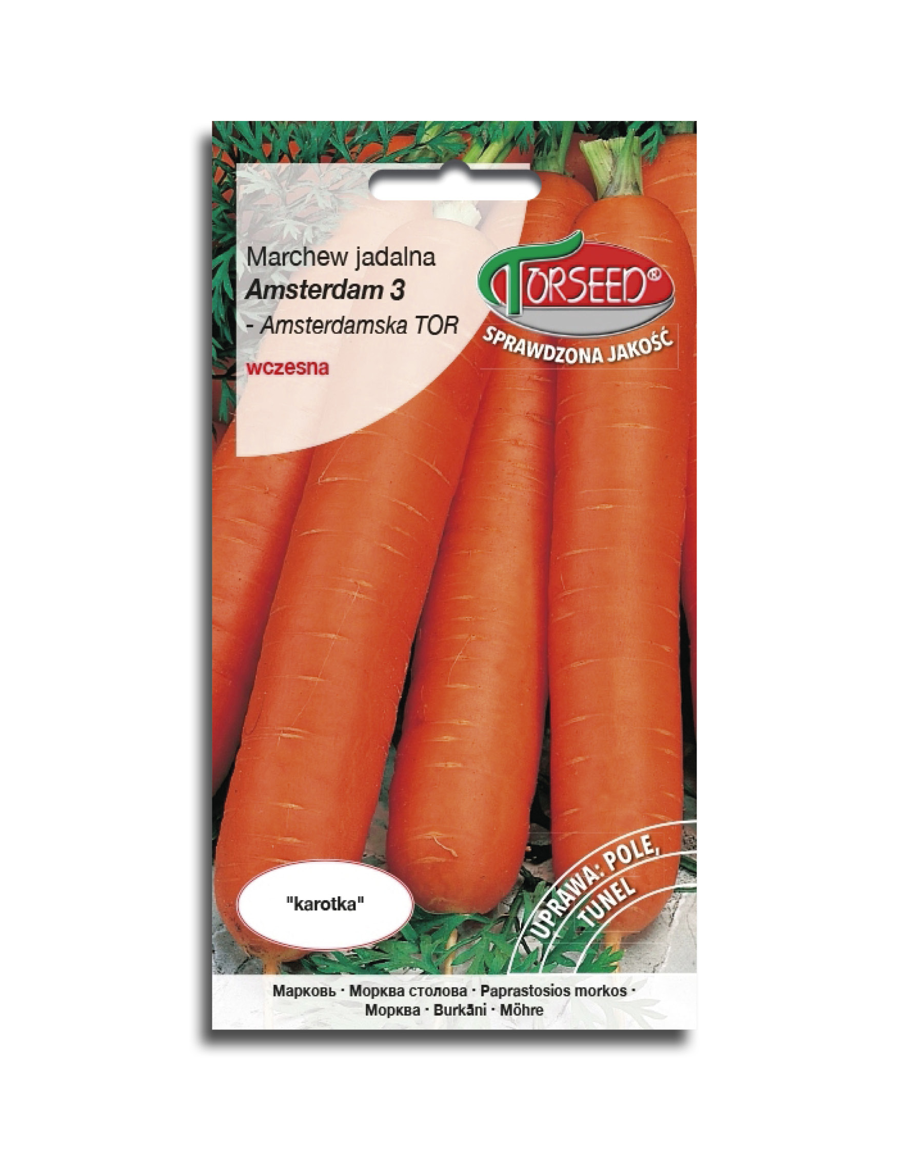 Marchew Amsterdam 3 – Amsterdamska TOR. Odmiana wczesna, ( 90-110 dni ), plenna, przeznaczona do uprawy w polu i pod osłonami, na wczesny i średniowczesny zbiór.