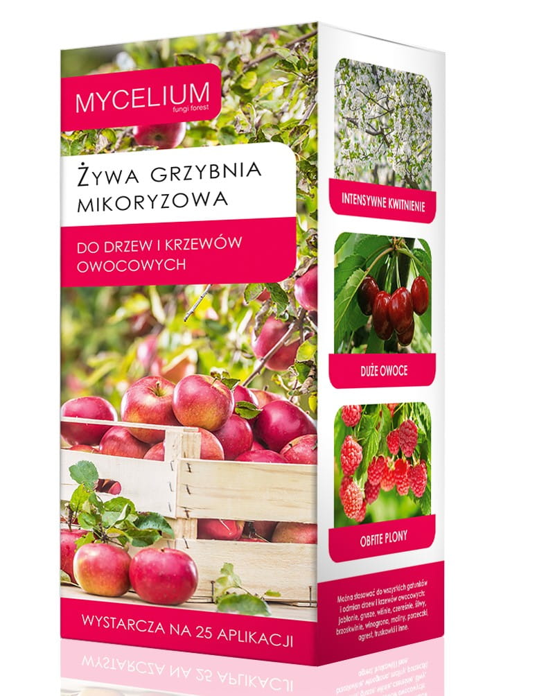 Mikoryza do drzew i krzewów owocowych to innowacyjny preparat oparty na wyjątkowych zdolnościach grzybów mikoryzowych. Zawiera żywe strzępki grzybni oraz zarodniki gotowe do natychmiastowego zasiedlenia korzeni, wyizolowane z najzdrowszych roślin. Grzyby mikoryzowe zawarte w preparacie łączą się z korzeniami roślin zapewniając in lepszy dostęp do wody i substancji odżywczych. Rośliny są zdrowsze bardziej odporne mają intensywniejsze przyrosty roczne i dają obfitsze plony.
