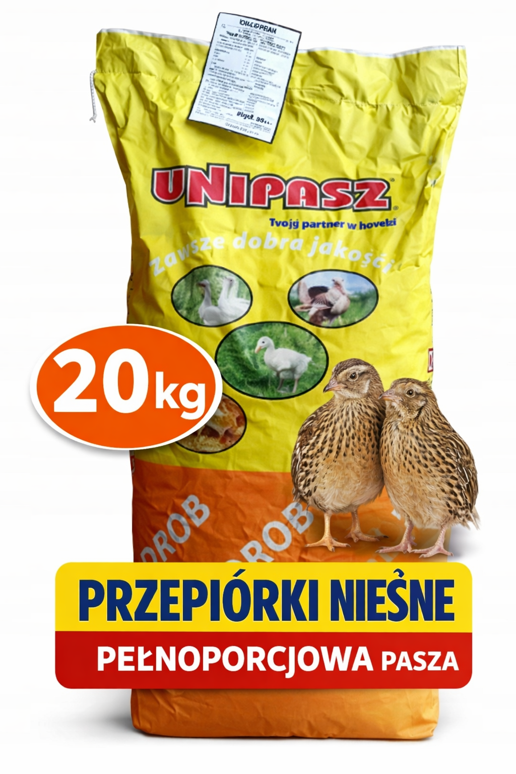 Pasza dla przepiórek w opakowaniu o pojemności 20 kg