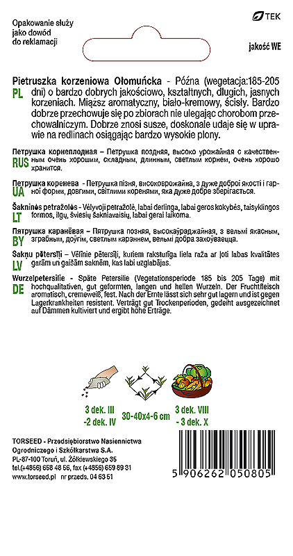 Pietruszka korzeniowa Ołomuńcka – Pietruszka późna (wegetacja 185-205 dni) o bardzo dobrych jakościowo, kształtnych, długich, jasnych korzeniach. Miąższ aromatyczny, białokremowy, ścisły. Bardzo dobrze przechowuje się po zbiorach nie ulegając chorobom przechowalniczym. Dobrze znosi susze, doskonale udaje się w uprawie na redlinach osiągając bardzo wysokie plony.