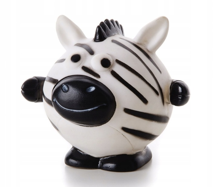 Winylowa piszcząca zabawka piłka zebra. Zabawka w kształcie piłki z podobizną zebry jest idealna do zabawy aktywnej z psem. Zabawka pływająca unosi się na powierzchni wody. Zabawka jest piszcząca. Piszcząca zabawka łatwo zwróci uwagę psu, który będzie gotowy do zabawy. Zabawką można się bawić w domu i na zewnątrz.