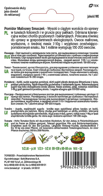 Pomidor wysoki Malinowy Smaczek – typ cherry. Pomidor wysoki o ciągłym wzroście do uprawy w tunelach foliowych i w gruncie przy palikach. Odmiana tolerancyjna wobec chorób grzybowych i bakteryjnych. Polecana również do uprawy w gospodarstwach ekologicznych. Owoce malinowe, wydłużone, o średniej masie 7-10g i wyjątkowo orzeźwiająco-pomidorowym smaku.