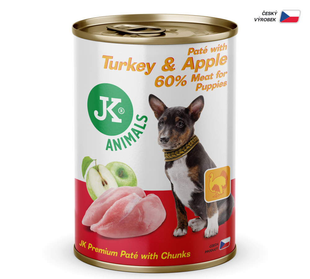 60 % mięso i produkty uboczne pochodzenia zwierzęcego – wątróbka, serca (16 % indyk), 34 % wywar, 5 % jabłka, 1 % minerały.