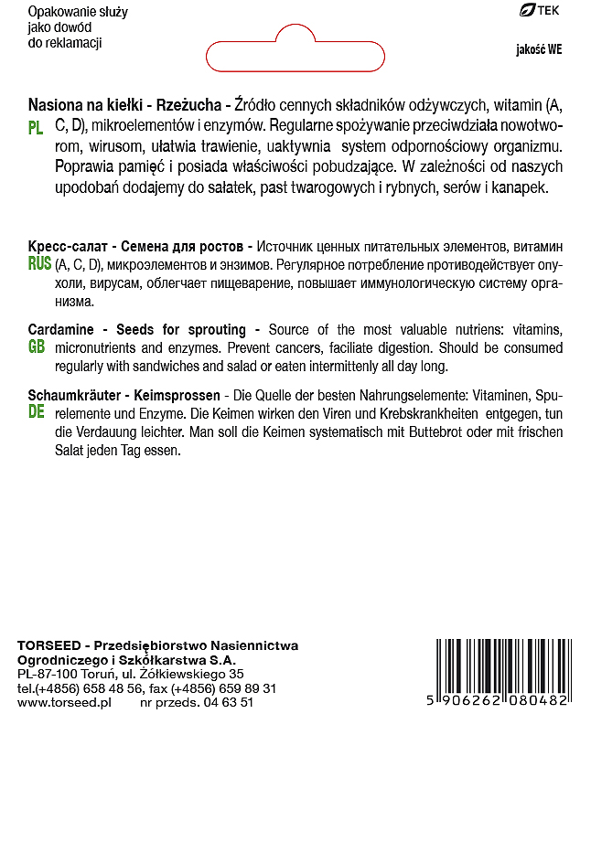 Rzeżucha ogrodowa. Źródło cennych składników odżywczych, witamin (A,C,D), mikroelementów i enzymów.