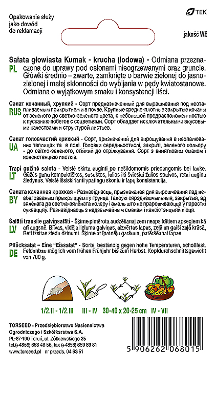 Sałata krucha (lodowa) Kumak. Odmiana przeznaczona do uprawy pod osłonami nieogrzewanymi oraz w gruncie. Główki średnio zwarte, zamknięte o barwie zielonej do jasnozielonej i małej skłonności do wybijania w pędy kwiatostanowe. Odmiana o wyjątkowym smaku i konsystencji liści.