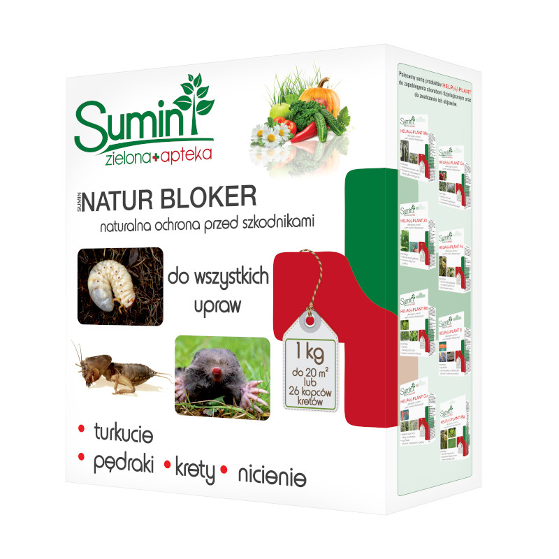 Natur Bloker – naturalny i bezpieczny produkt w formie pelletu, pochodzący z materii roślinnej. Działa bezpośrednio na glebę stwarzając w niej niekorzystne warunki do rozwoju chorobotwórczych grzybów oraz bytowania i żerowania niepożądanych szkodników (turkuć podjadek, krety, nornice, pędraki, nicienie). Pierwiastki zawarte w materii organicznej są stopniowo uwalniane i stanowią doskonałe źródło nawożenia roślin. Przywraca również równowagę flory mikrobiologicznej, która sprzyja rozwojowi pożytecznych organizmów.