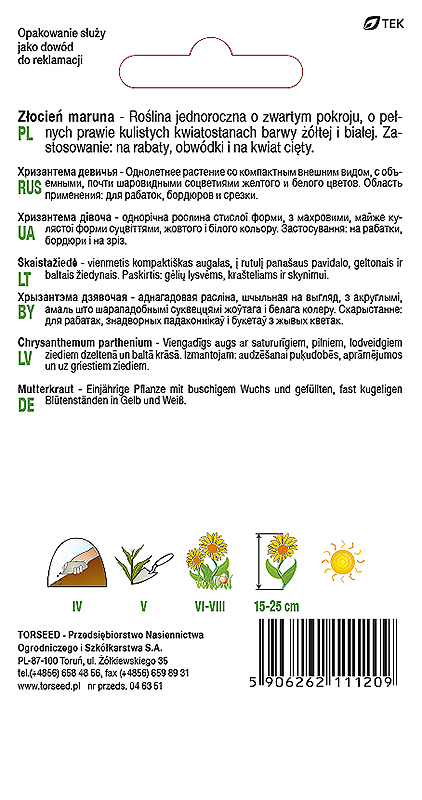 Roślina jednoroczna o zwartym pokroju, o pełnych prawie kulistych kwiatostanach barwy białej. Zastosowanie: na rabaty, obwódki i na kwiat cięty.